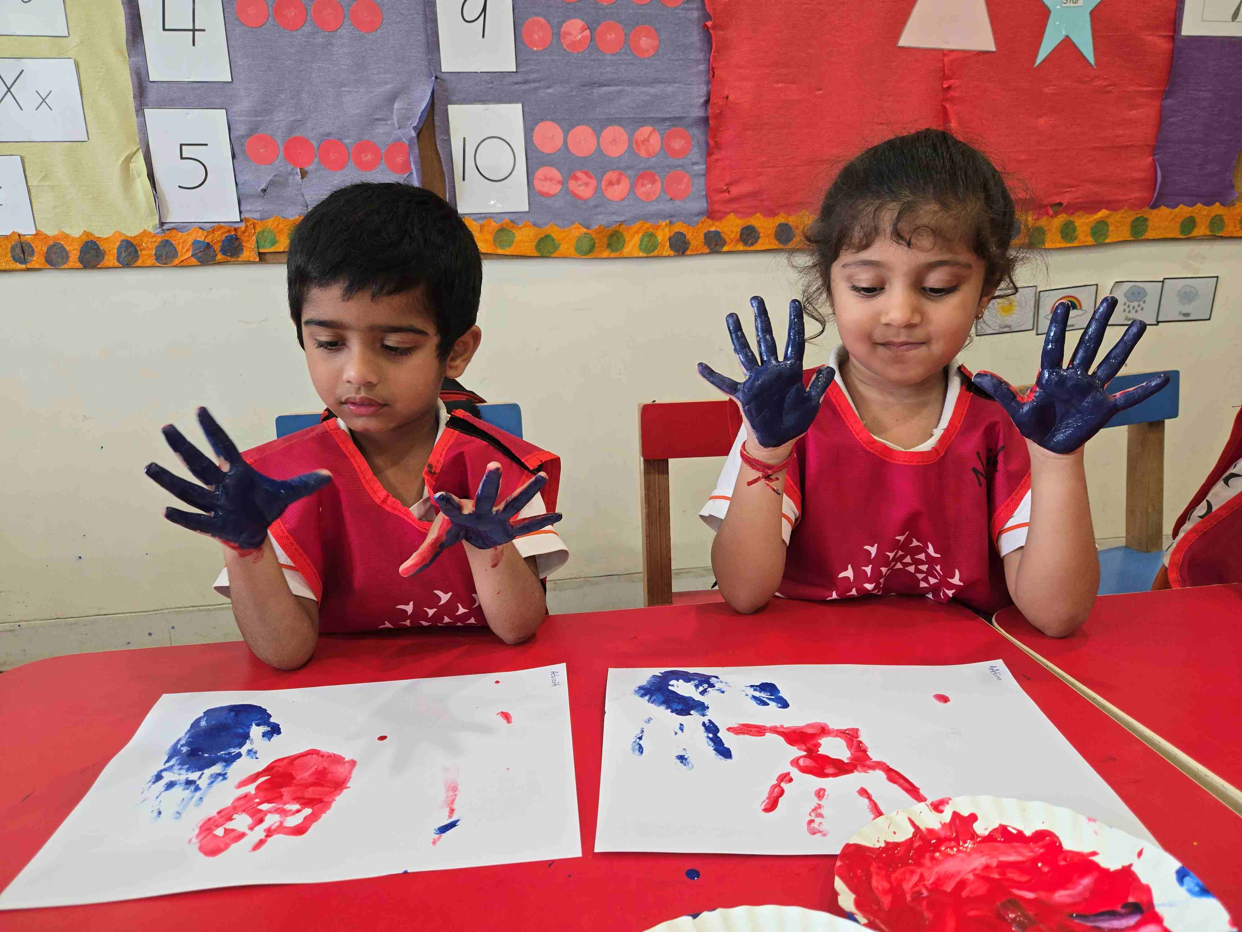 Happy Blue Day!This day was celebrated on Friday, September 27, 2024, with great delight and enthusiasm! All of the children dressed in gorgeous shades of blue, capturing the day's vivid energy. The day celebration connected learning about ocean strata to understanding aquatic life. Students created a blue peacock using their hand prints. A PowerPoint presentation displayed items found in the colour blue. Children learnt blue as their primary colour. The classrooms were decorated with streamers and artwork created by children to showcase their ingenuity. The Blue Day celebration not only brightened our day, but also helped the kids comprehend and appreciate colours and their meaning. It was a day full of joy and laughter.