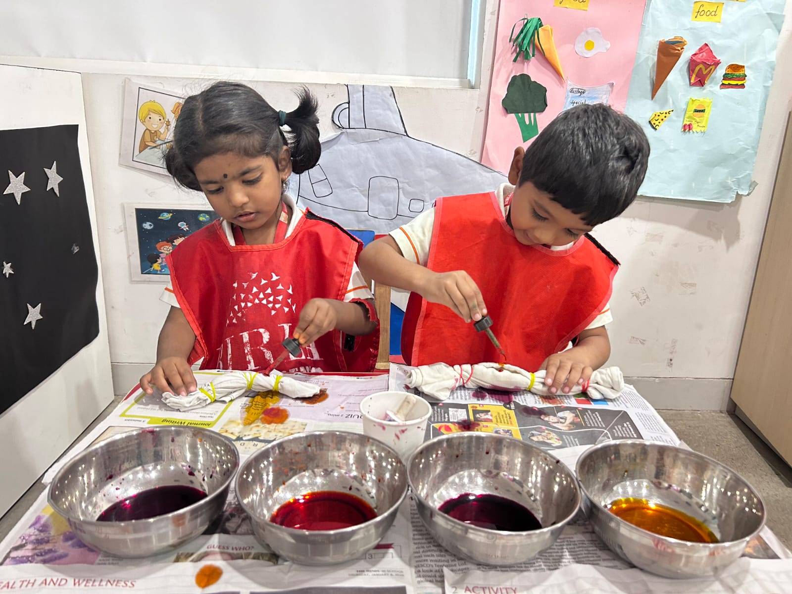Making the present generation play in mud is a means to bring back the good old days. On August 7, 2024, our young ones participated in a Mud Play Day centered around the recurring topic of "Murky Mud." Students were observed appreciating the unstructured, messy play, which is an extremely healthy type of play that fosters growth in all areas of a child's development, including physical, cognitive, and emotional development.
