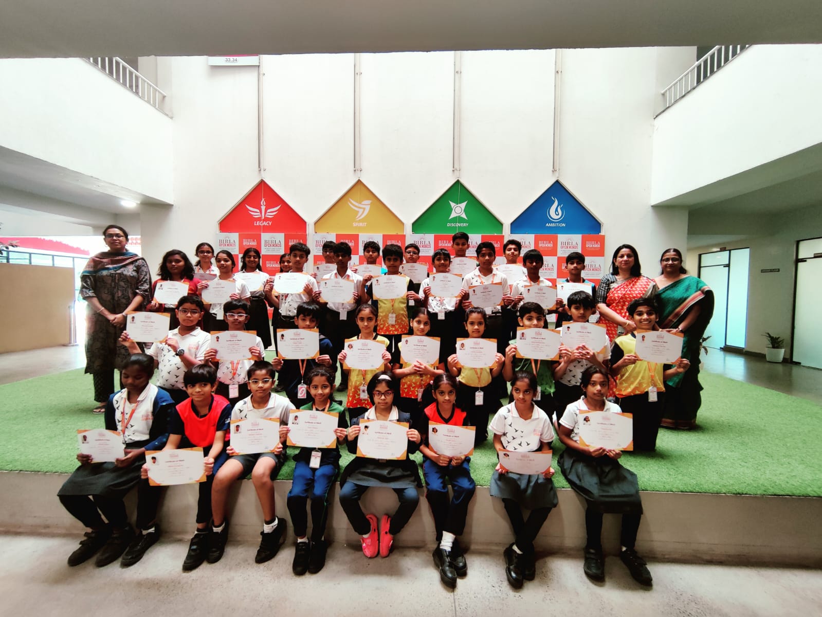 We planned a special assembly where students from Primary to Secondary grades participated in a variety of programs, including speeches, essay recitations, poetry performances, and a Hindi skit.