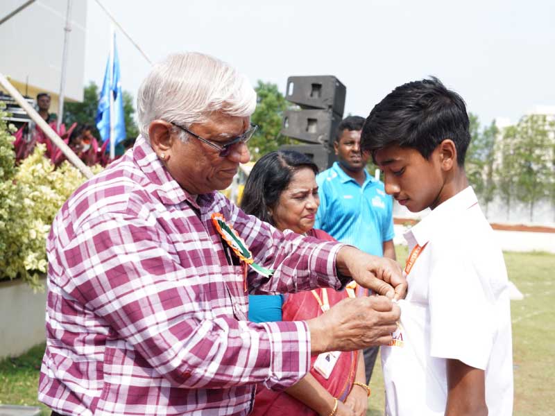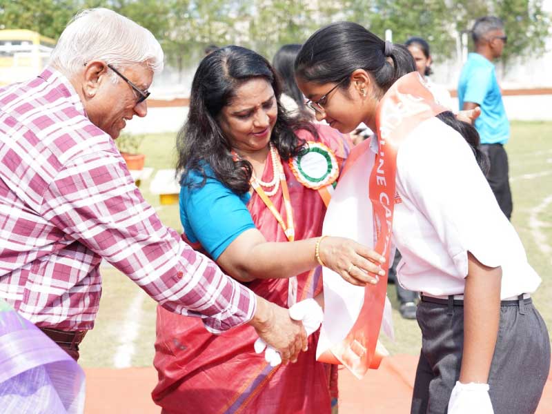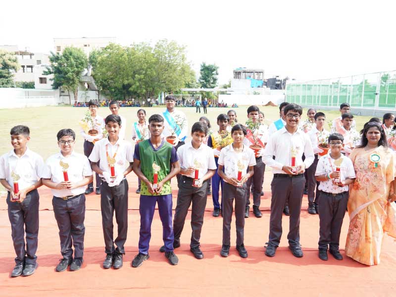 About the South Zonal Meet, which was held in Bandlaguda Jair and in which more than 800 kids competed in sports, Tanish Head Boy interviewed VP ma'am. Being the host this year is undoubtedly a great time for BOMIS Bandlaguda Jagir, and as VP maam stated, the closing ceremony was a spectacular occasion when we commemorated the three-day voyage. Together with our Chief Guests Sikki Reddy and Sumeet Reddy, all of the directors from various branches came together for this occasion, supporting their students and presenting the winners. They valued our pupils and inspired them to perform better in the future. At the end, there are prizes given to the teachers in recognition of their months of dedication to teaching their children.