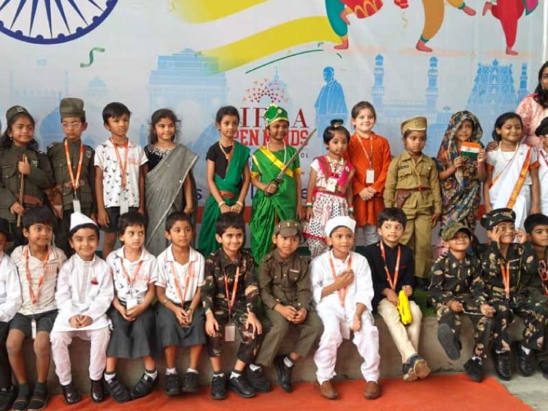 Independence Day Grade - 1 They dressed as "Heros of Freedom" They all were dressed as iconic figures - Jawaharlal Nehru,Bhagat Singh., Lal Bahadur Shastri ,Subhas Chandra Bose,Rani Laxmi Bai.... It was a vibrant and energetic celebration, showcasing their creativity and patriotism. This engaging inter house event seamlessly blended skill development and learning providing the students an opportunity to appreciate our nation's rich heritage.