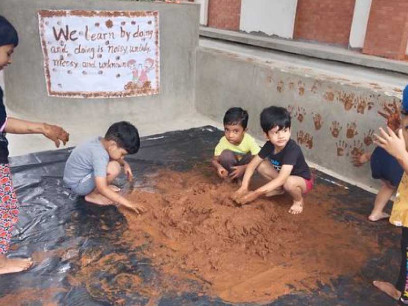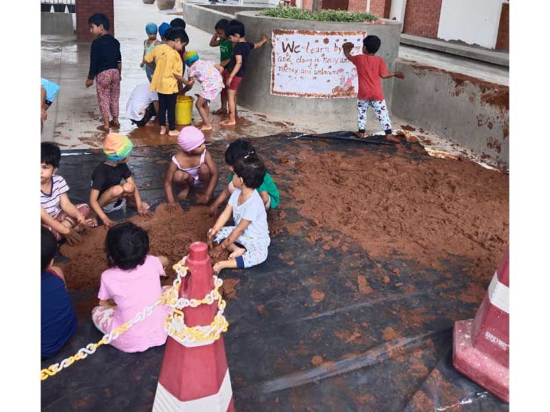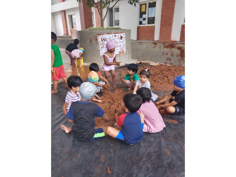 Making the present generation play in mud is a means to bring back the good old days. On August 7, 2024, our young ones participated in a Mud Play Day centered around the recurring topic of "Murky Mud." Students were observed appreciating the unstructured, messy play, which is an extremely healthy type of play that fosters growth in all areas of a child's development, including physical, cognitive, and emotional development.