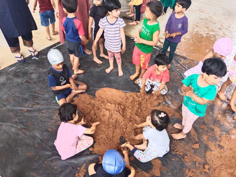 When children used their imaginations to create different shapes while rolling and clumping in the mud, the fun multiplied. The exercise gave students a flexible platform to express their imaginations and creativity while also strengthening their relationships with one another. Engaging in such activities helps children strengthen their immune systems and fosters innovative ideas that support their general creative growth.