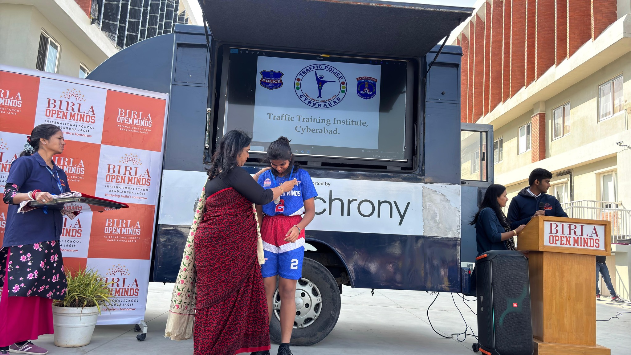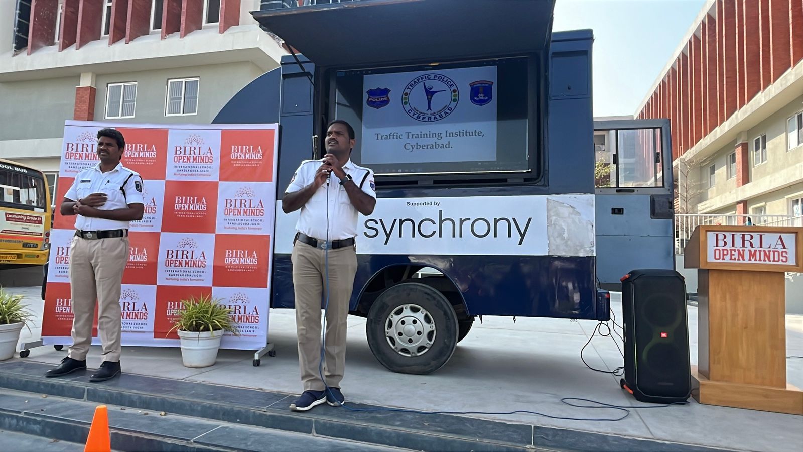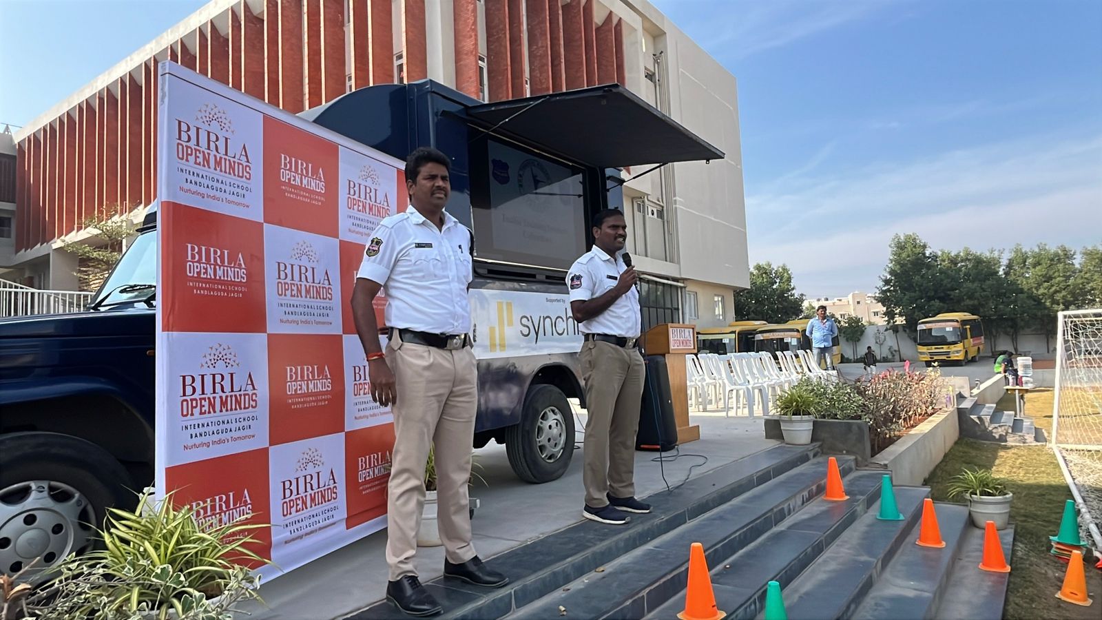 A briefing on safety regulations was given by the traffic police who had visited the school. Teaching traffic safety information and specifics, such as the fundamentals of wearing a helmet, fastening a seatbelt, and using zebra crossings, is crucial. We value the efforts of the Cyberabad Metropolitan Police, who made the event an exchange of information by asking and responding questions.