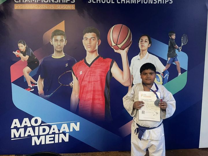 Here comes the Champion! Suryansh Reddy G, Grade 4 Alpha won Silver medal in Kata - Under 11 Boys category SFA Championship.-Well done Suryansh!