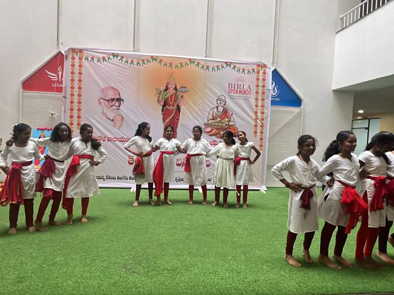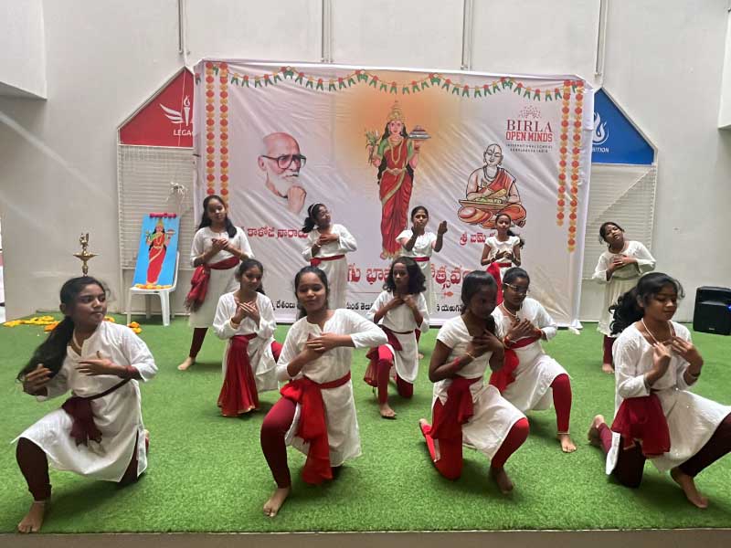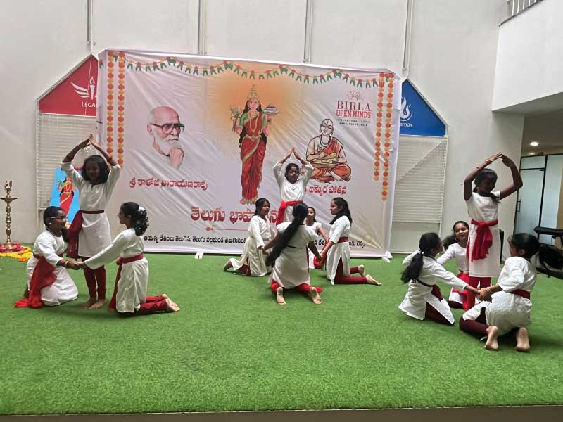 We celebrated Telugu Bhasha Dinotsavam today, which made it noteworthy. Our Telugu Department planned and conducted a unique assembly to highlight the value of our local tongue. Pupils performed speeches, danced, sang Telugu songs, answered riddles, and dressed as leaders.